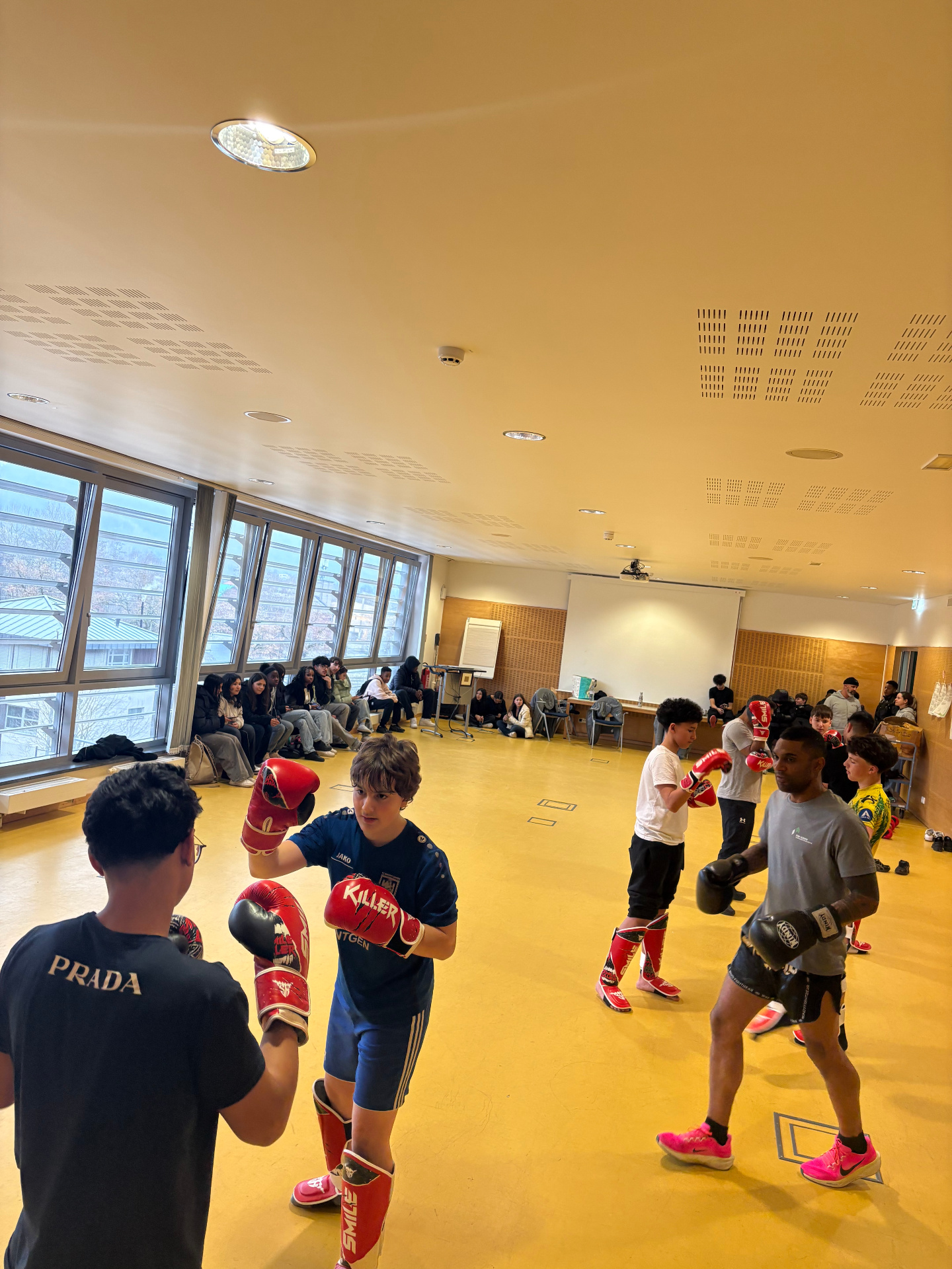 Véier Intervenante vun Inter-Actions waren op Besuch an hunn eise Schüler eng Thaïboxe-Demonstratioun souwéi e praktesche Cours ugebueden. D’Schüler konnte sech auspoweren a gläichzäiteg eng nei Sportsdisziplin kenne léieren 💪🥋