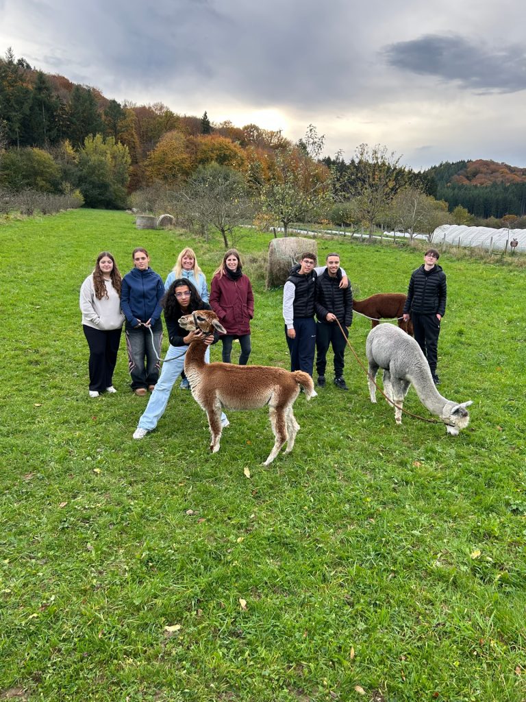 6 vun eise Schüler haten d’Méiglechkeet vill Spannendes iwwer d’Alpakaen ze léieren a sinn duerno mat hinnen op eng kleng Wanderung duerch de Bësch gaangen.