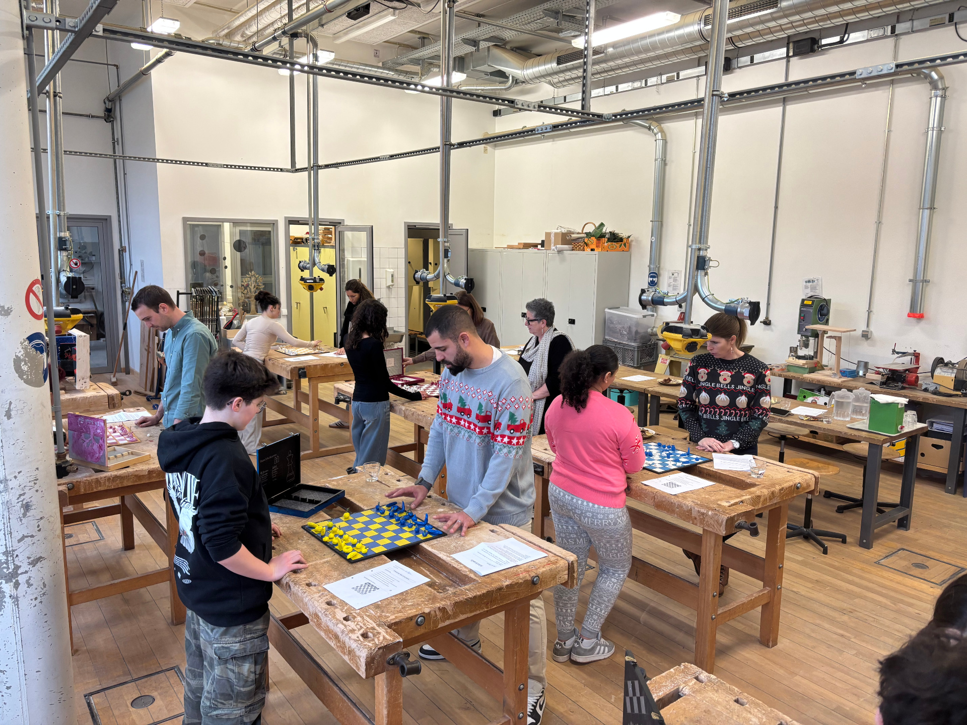 D’Schülerinnen a Schüler vun der 7P6 hunn am Atelier polyvalent wonnerschéi Schachspiller hiergestallt an dobäi och geléiert Schach ze spillen. Dës grouss Faszinatioun fir d’Spill hu si e Mëttwoch mat verschiddene Memberen aus der Communauté scolaire gedeelt.