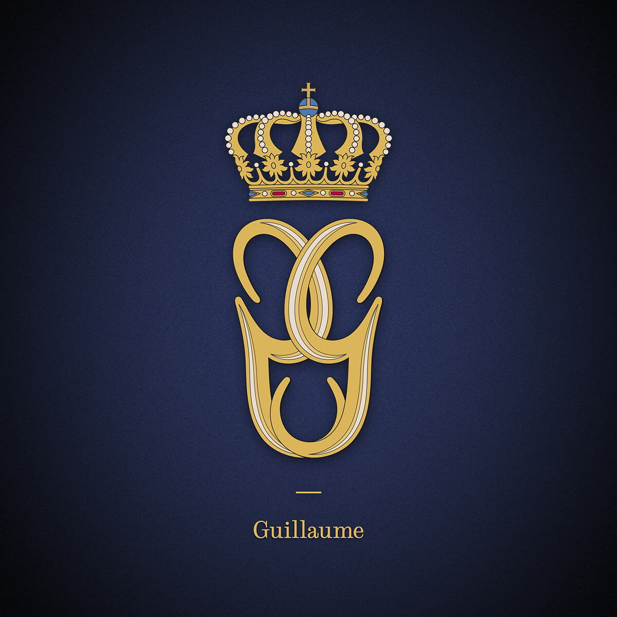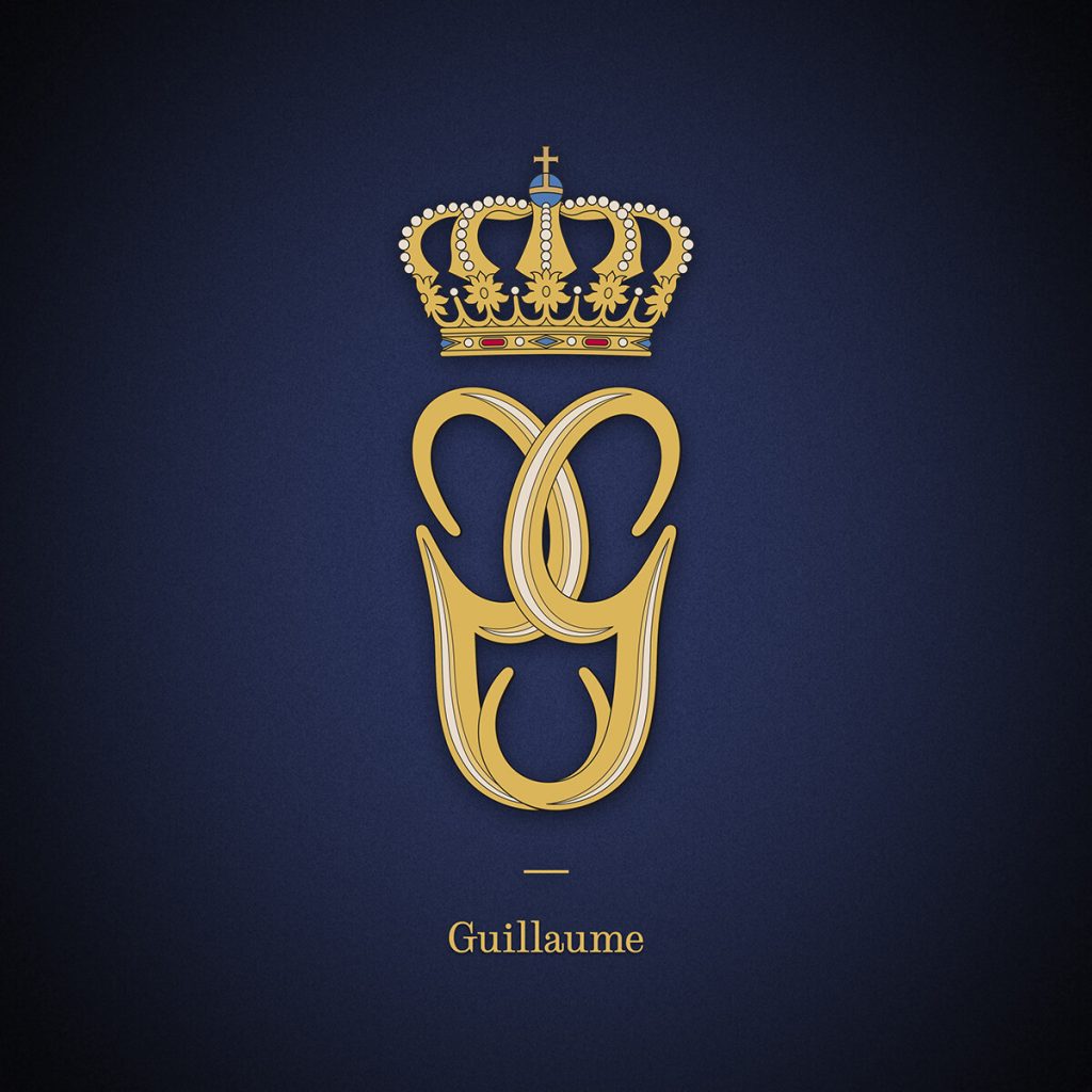 Besonnesch houfreg si mir op eis fréier Schülerin a Grafik-Designerin Yolande Koster-Kaiser, déi d’grouss Éier hat den offizielle Monogramm fir den zukünftege Grand-Duc Guillaume auszeschaffen :